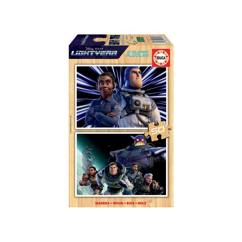 Découvrez le coffret de 2 puzzles en bois de 50 pièces chacun à l'effigie de Buzz l'Éclair, conçu par Educa pour les enfants de 4 à 6 ans. Fabriqué avec des matériaux écologiques, ce puzzle offre des images aux couleurs vives et des pièces faciles à manipuler.