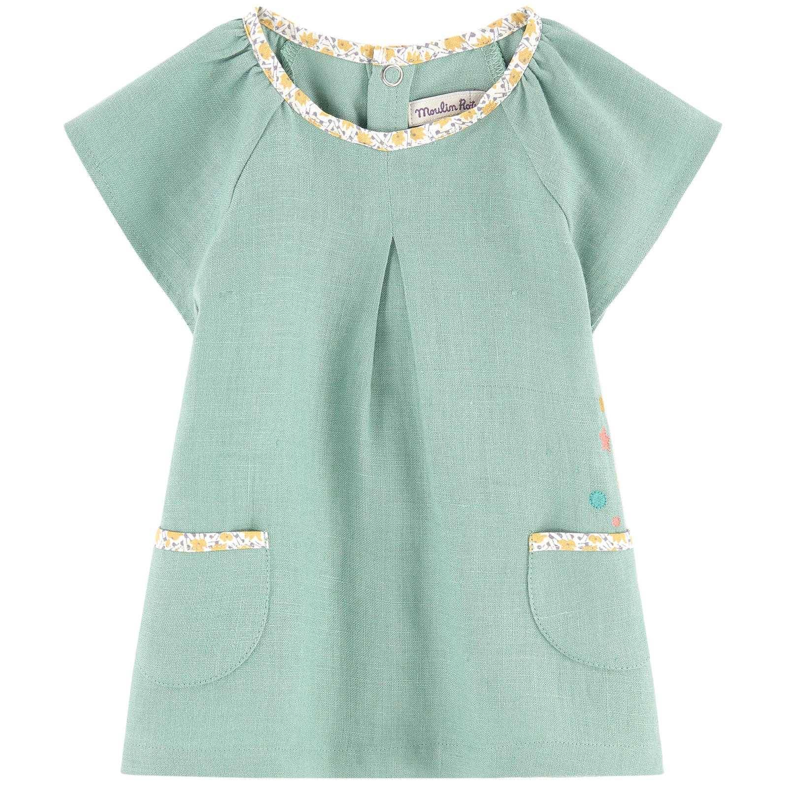 Robe en lin lavé opaline en forme trapèze à manches courtes.
