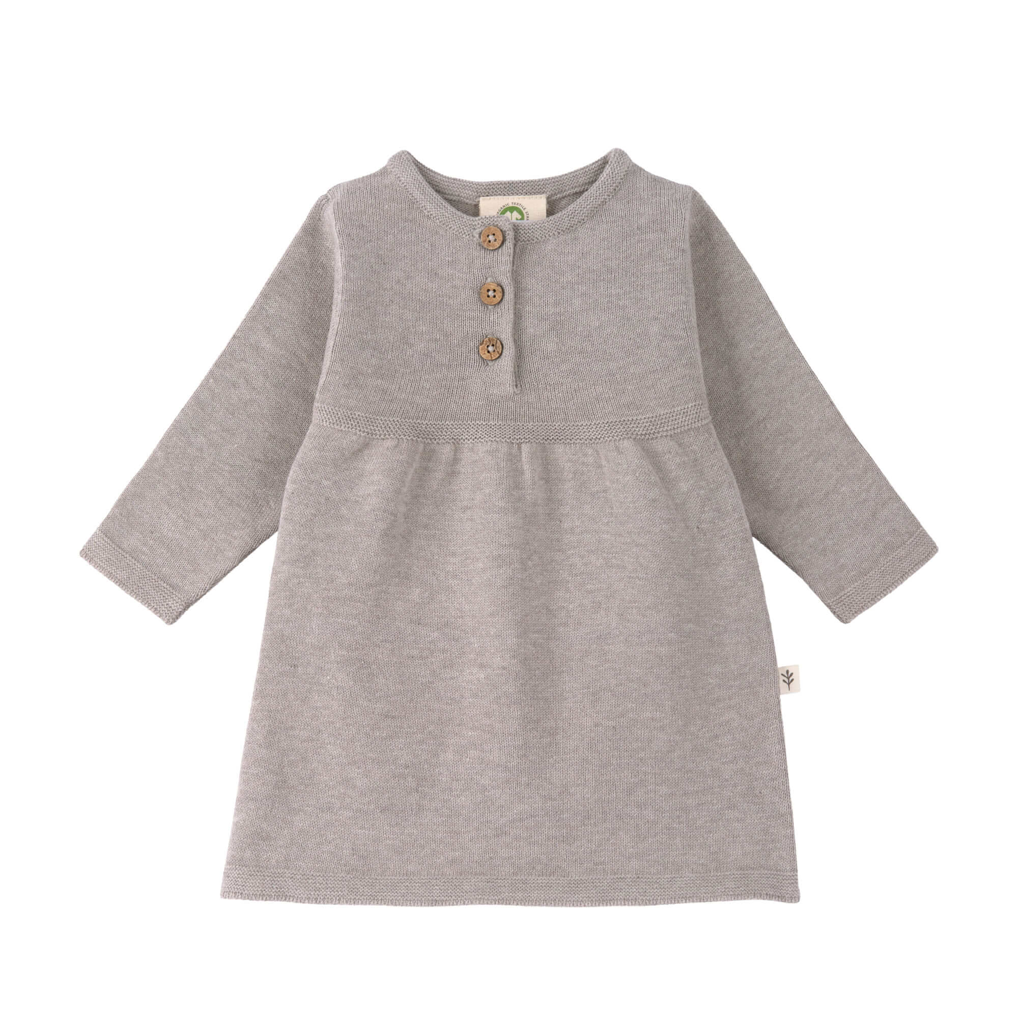 Robe tricotée Garden Explorer en gris de LÄSSIG, alliant coton bio certifié GOTS et soie Eri pour une douceur et un confort exceptionnels. Idéale en toute saison.