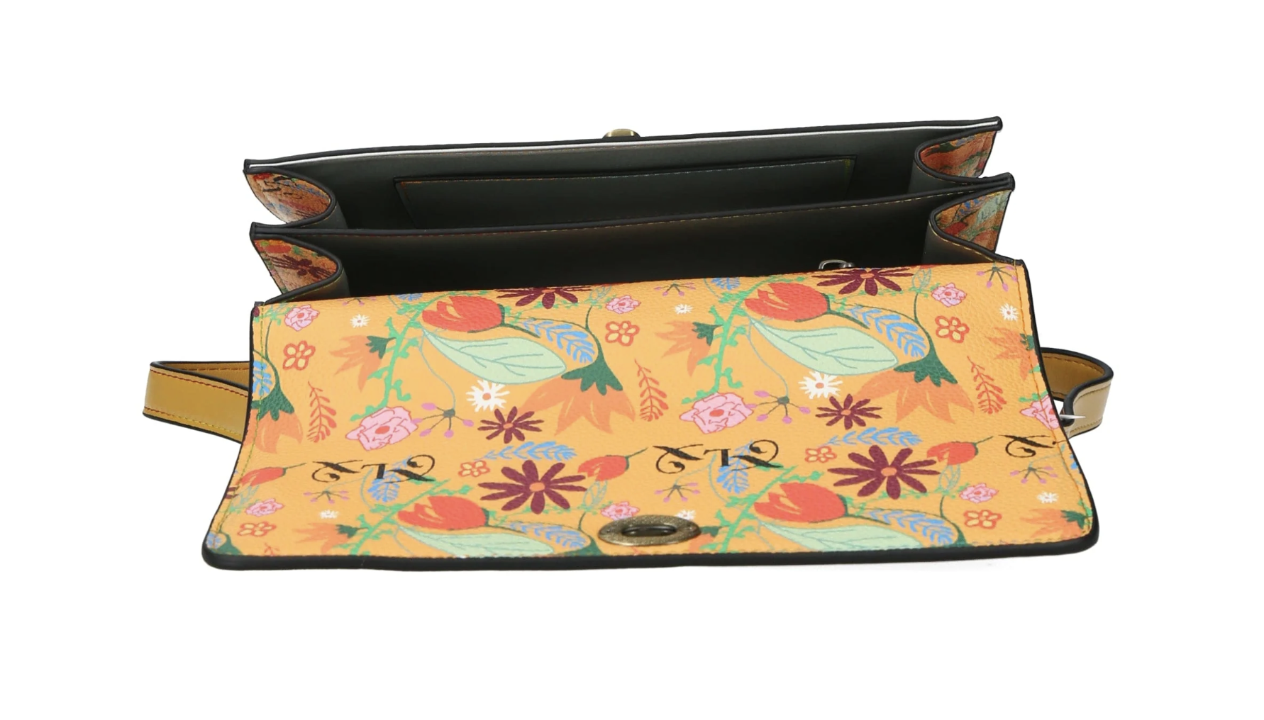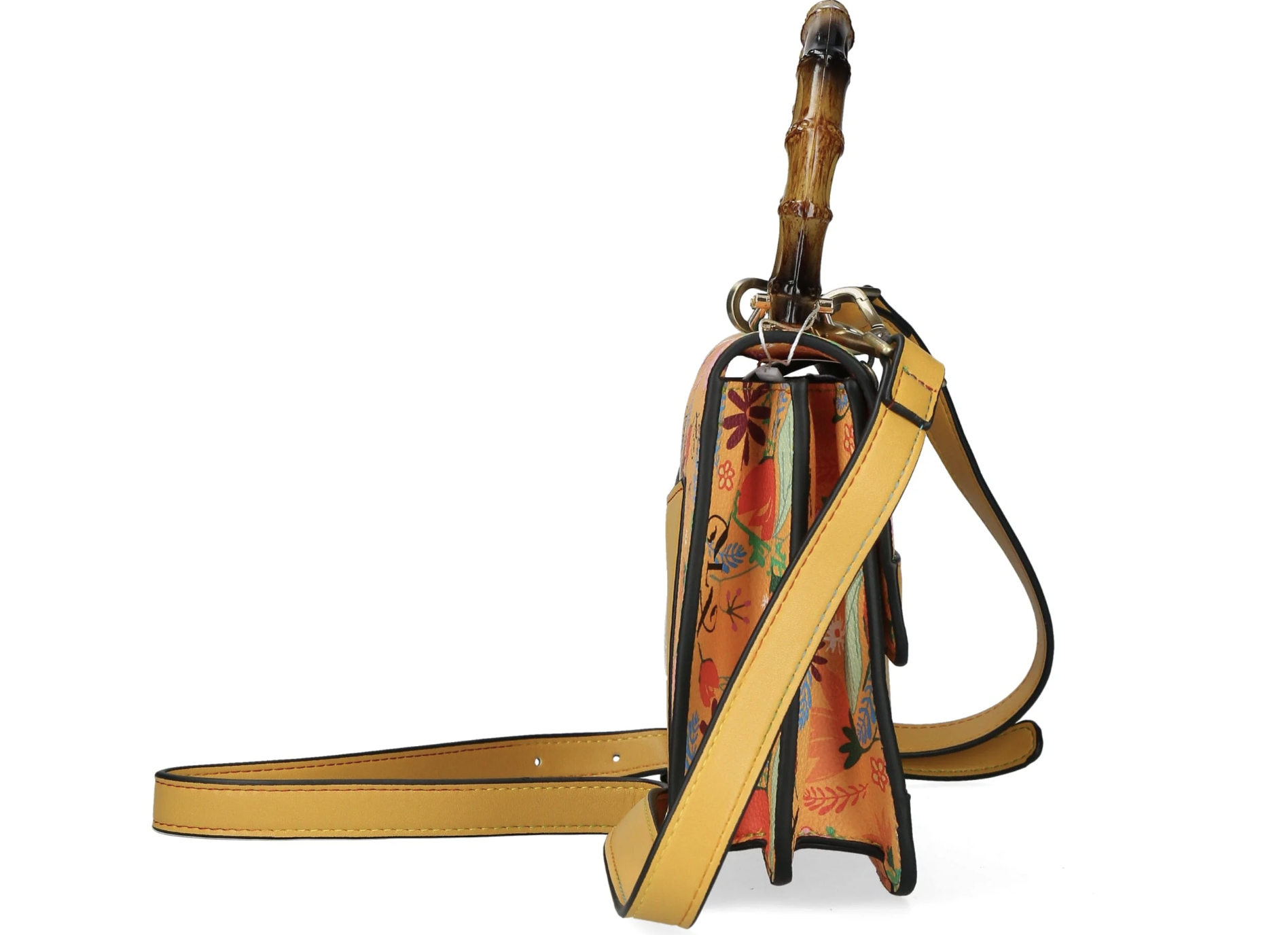 Le sac à main jaune Laura Vita 4812 combine élégance et praticité avec son design en cuir et simili, ses multiples compartiments et son anse imitation bambou.