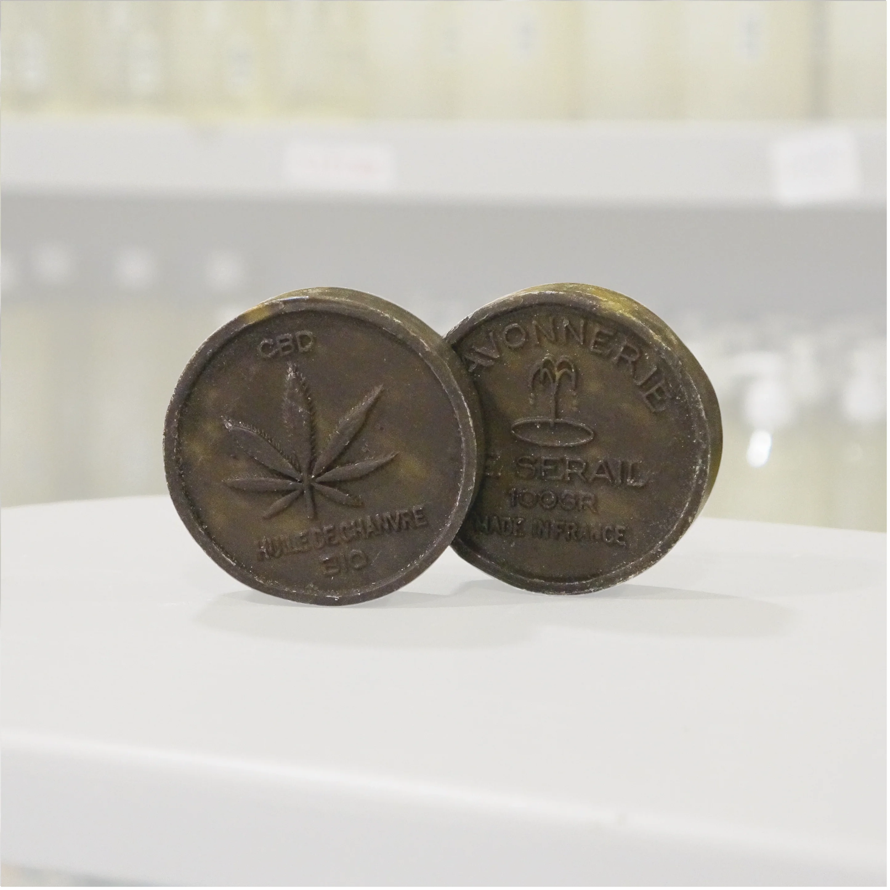 Voici notre savon à base de savon de Marseille et à l'huile de CBD.