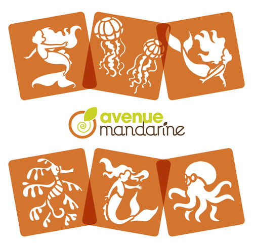 Set de 6 pochoirs enfants, Créatures marines - Avenue mandarine
