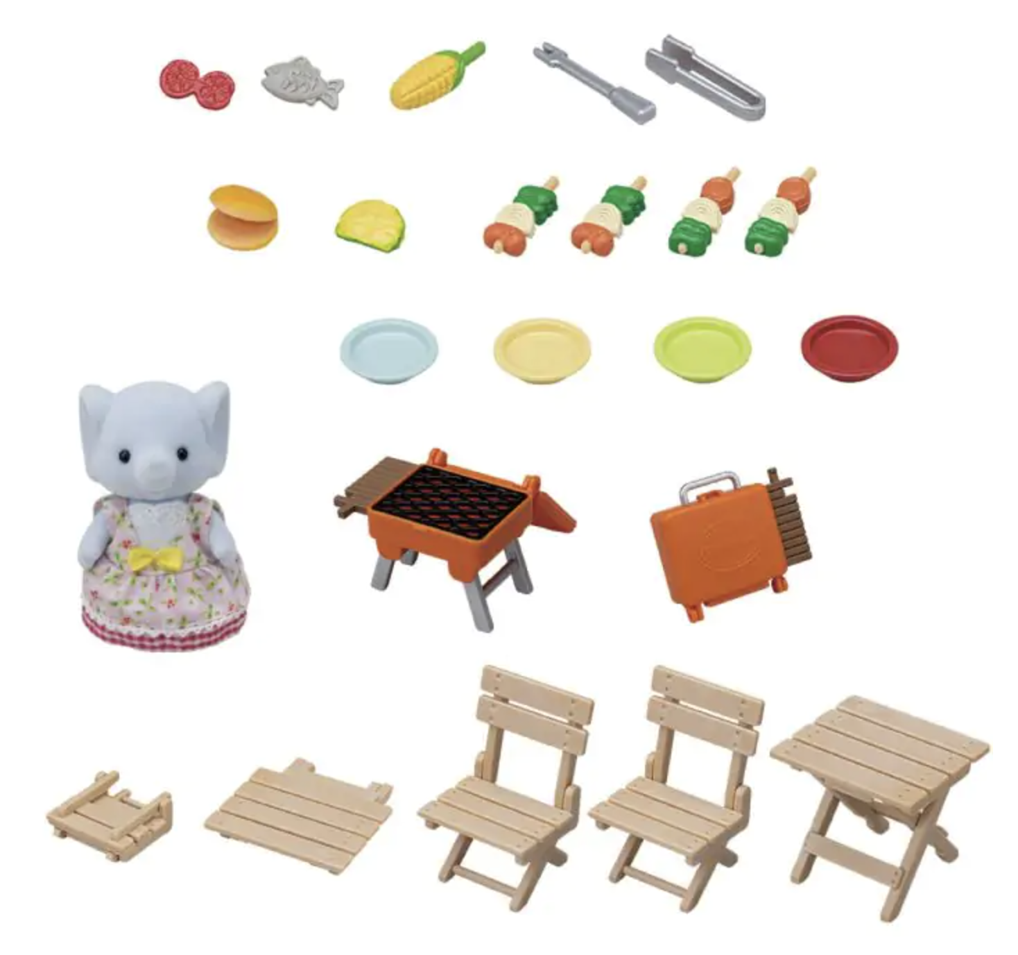 Sylvanian Families – La fille Éléphant son barbecue et Accessoires de Pique-nique