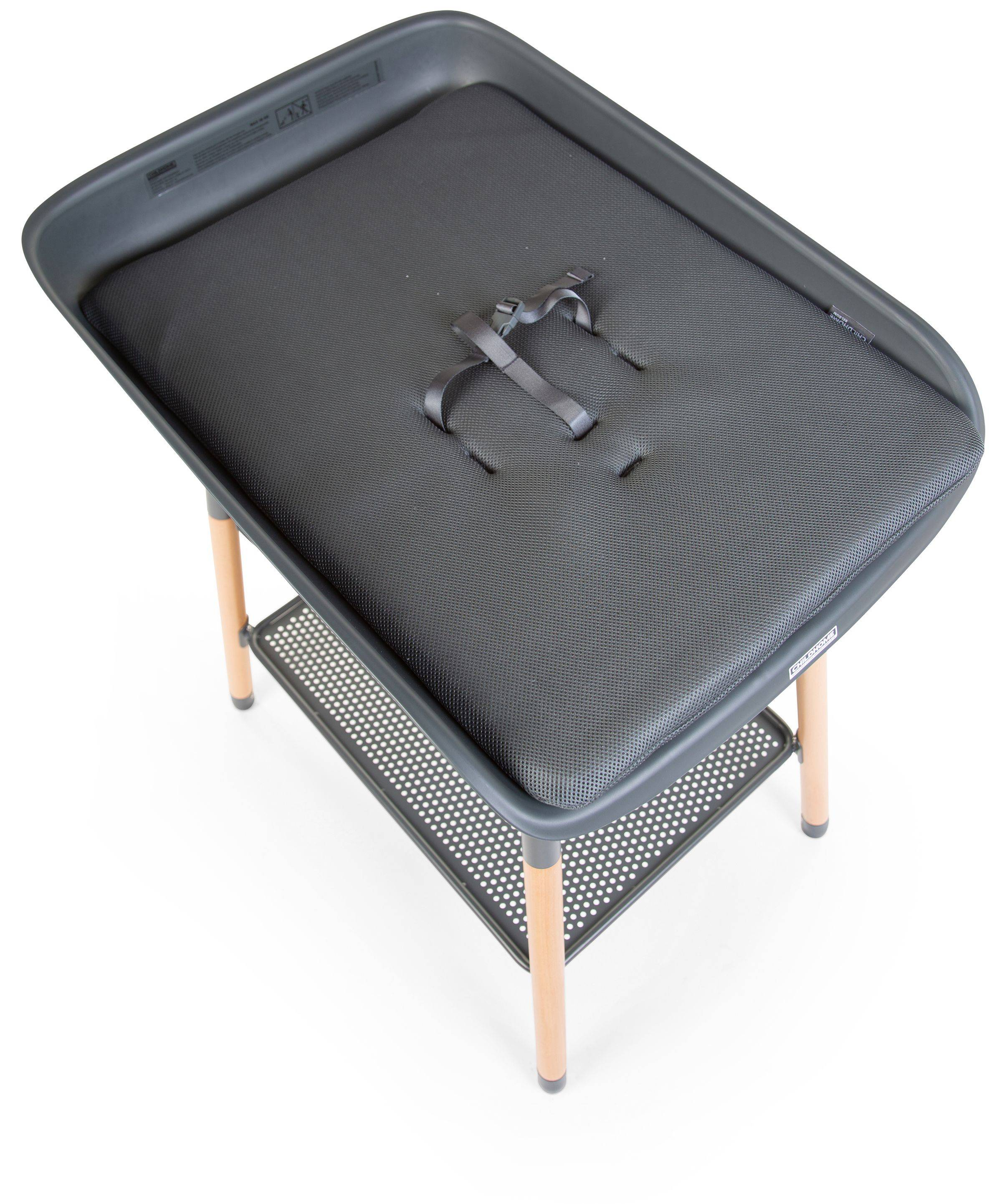 La table à langer Evolux de Childhome en coloris naturel et anthracite est ajustable sur 4 hauteurs, équipée de roulettes avec frein, d'un plan à langer spacieux et d'accessoires pratiques, offrant un espace de change sécurisé et confortable pour votre bébé.