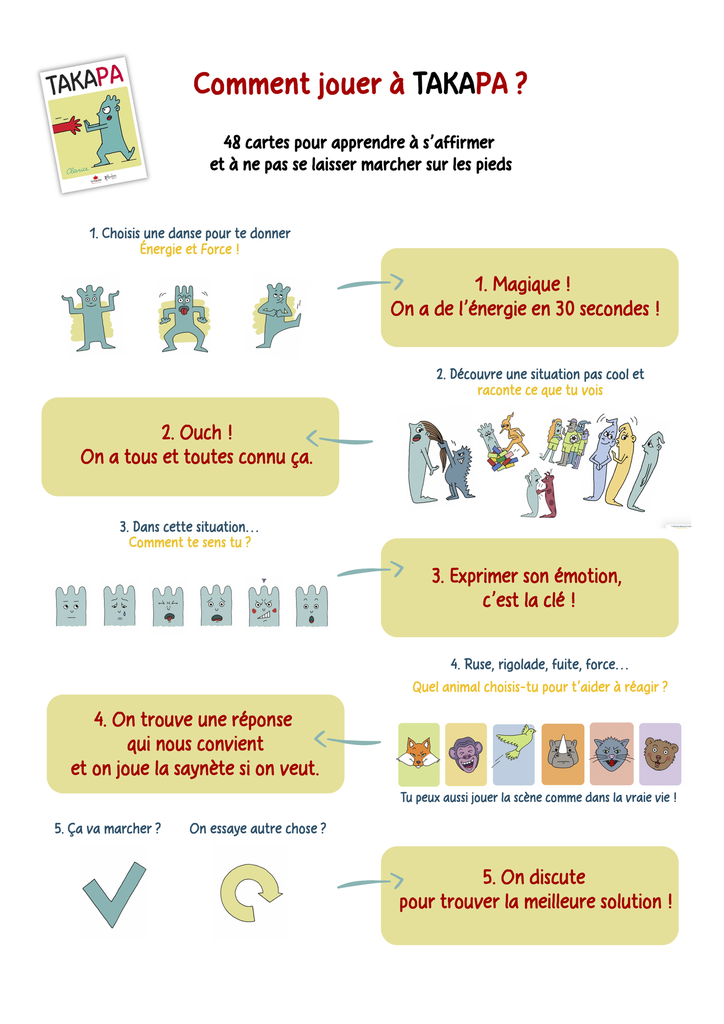 Takapa est un jeu de cartes éducatif pour enfants de 4 à 8 ans, conçu pour les aider à s'affirmer et à déjouer les pièges du harcèlement en explorant 30 situations courantes avec l'aide de 6 animaux malins. ([desclic.net](https://www.desclic.net/product-page/takapa?utm_source=openai))