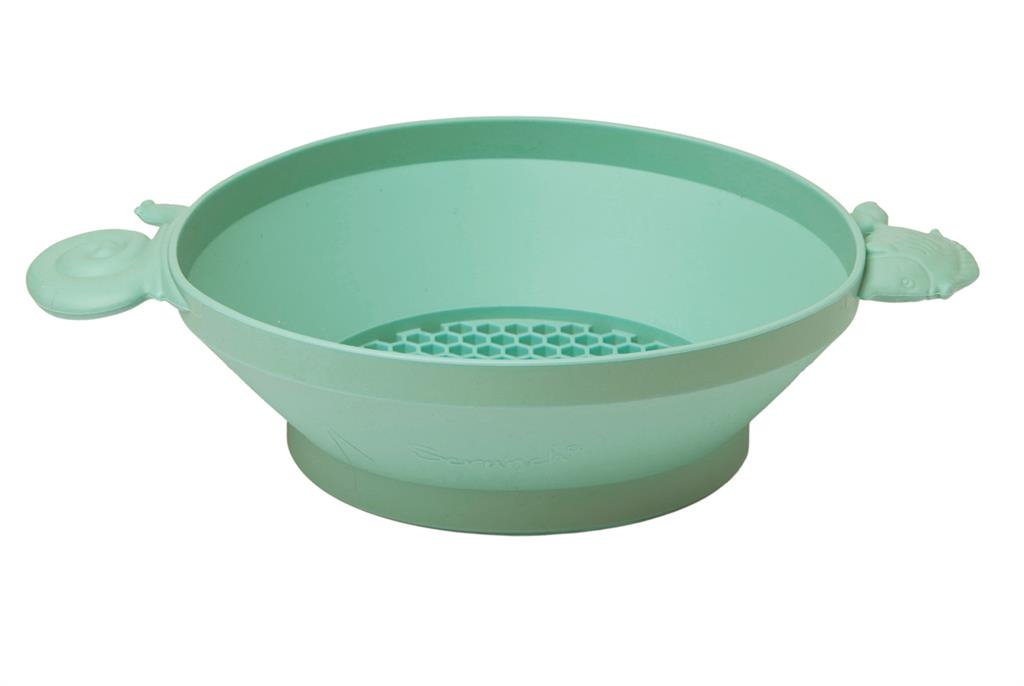 Le tamis de plage Menthe de Scrunch, en silicone recyclable, est souple, durable et facile à transporter. Idéal pour les jeux de sable dès 12 mois.
