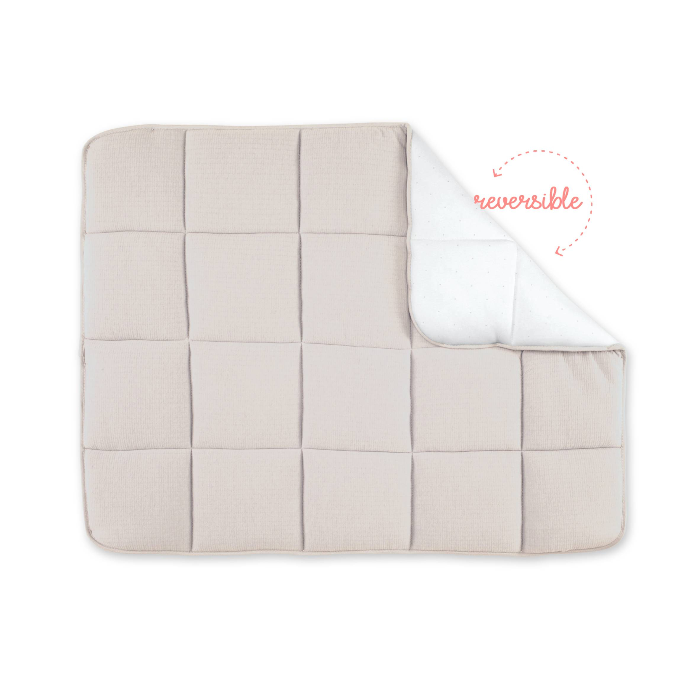 Le tapis de parc réversible Bemini en tétra jersey, coloris Sand, dimensions 75x95 cm, offre un espace de jeu confortable et sécurisé pour votre bébé.