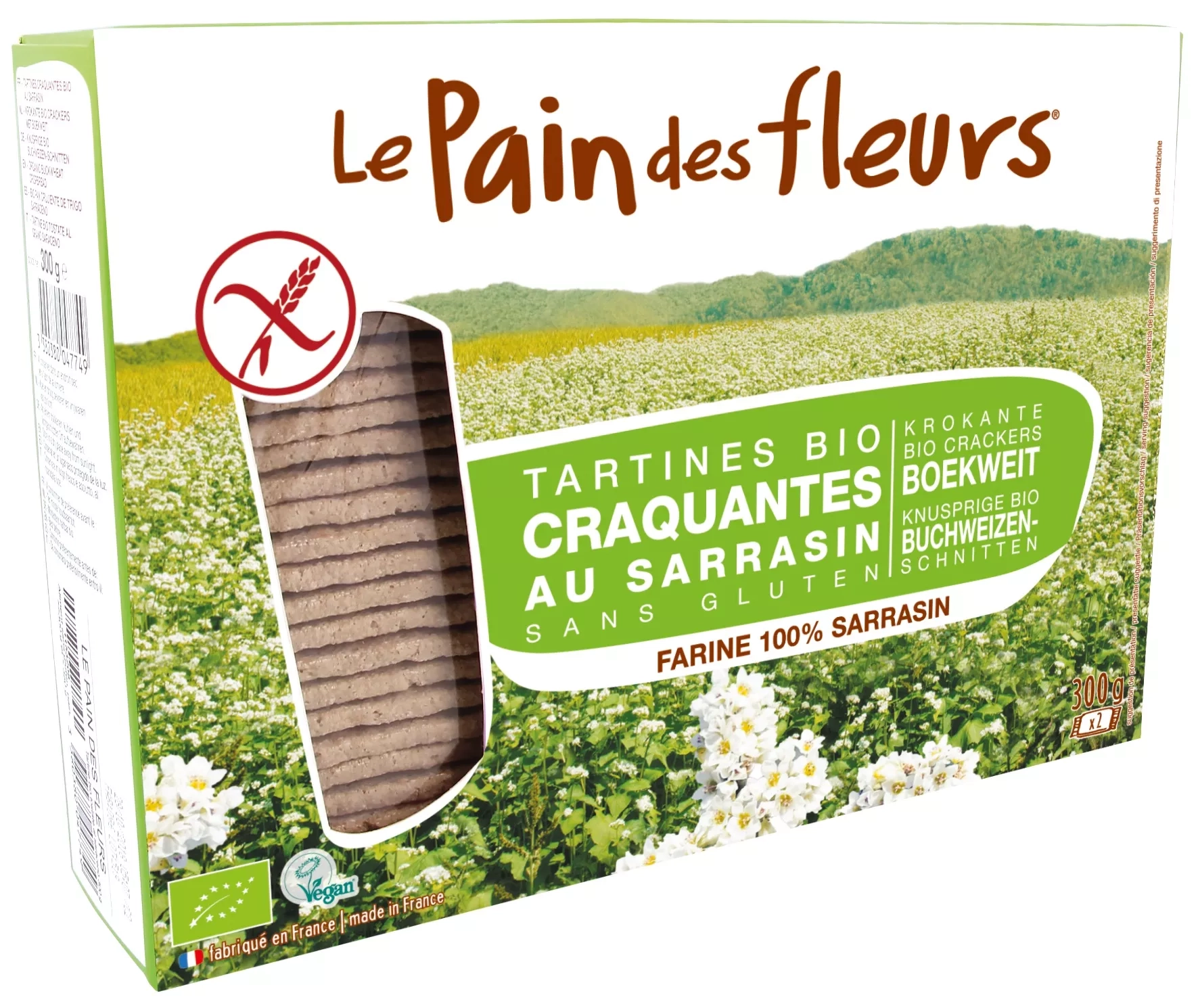 Farine de sarrasin*, sucre de canne complet* (<2%), sel marin.