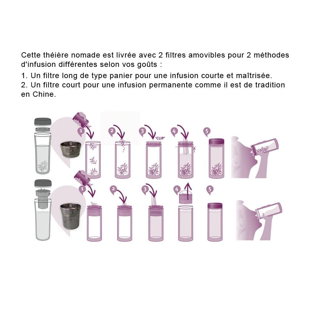 Livré avec 2 filtres pour 2 méthodes d'infusions différentes selon le thé ou l'infusion utilisé ou encore selon vos goûts :