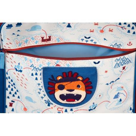 Le Trolley Jack le Pirate de Lilliputiens est une valise à roulettes colorée et imperméable, idéale pour les enfants dès 2 ans. Avec son grand compartiment, sa poche avant spacieuse et sa poche latérale pour bouteille, il est parfait pour les week-ends et les vacances.
