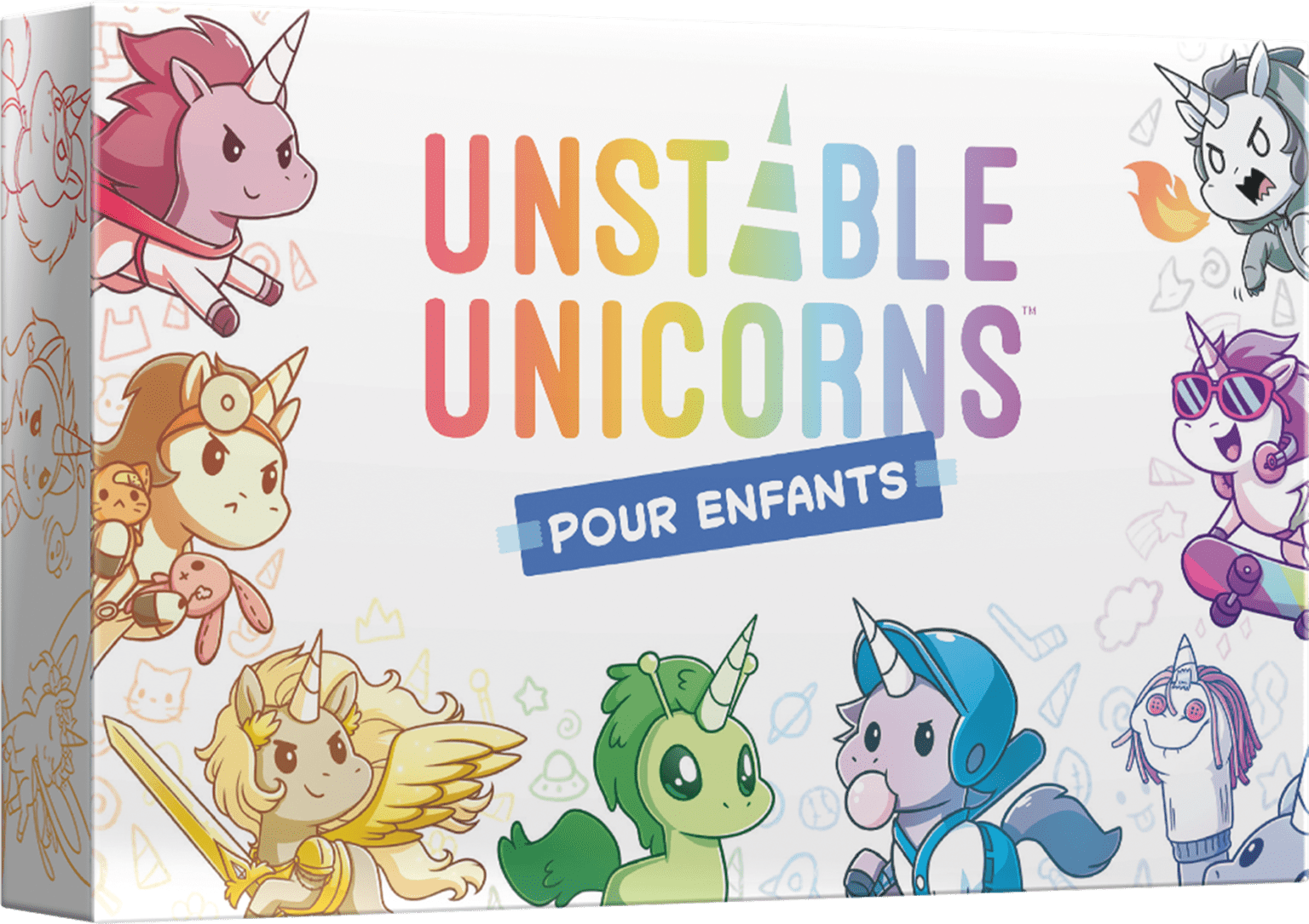 Unstable Unicorns pour Enfants est un jeu de cartes magique et stratégique où les joueurs collectent des licornes et utilisent la magie pour être le premier à rassembler une écurie de 7 licornes. Conçu pour 2 à 6 joueurs dès 6 ans, ce jeu offre des illustrations adorables et des personnages inédits qui raviront les plus jeunes.