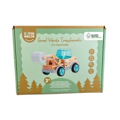 Le Véhicule Transformable - Grand Camion Rouleau de Sapin Malin est un jouet en bois éco-conçu aux pièces amovibles, permettant aux enfants dès 3 ans de créer leur propre design et de l'assembler avec d'autres véhicules de la collection pour former un long camion.